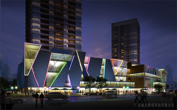 裙樓以商業(yè)內(nèi)透體現(xiàn)其營運(yùn)功能,渲染熱鬧與繁華的商業(yè)氣氛及現(xiàn)代時(shí)尚的結(jié)構(gòu)特征。局部選用彩色光源點(diǎn)綴,打造耀眼、繽紛的燈光氛圍。